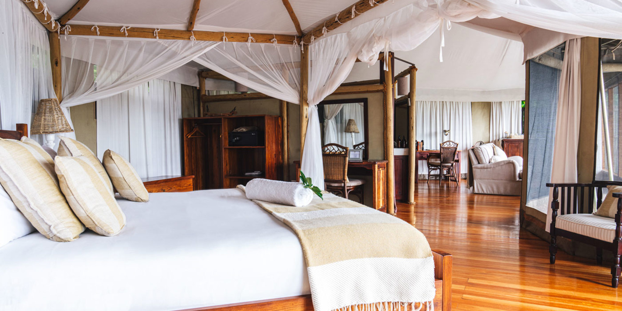 Each tent has an en-suite bathroom with indoor and outdoor showers, and a comfortable seating area to relax during the heat of the day. The design is simple and natural, keeping the focus on the setting rather than anything overly elaborate.