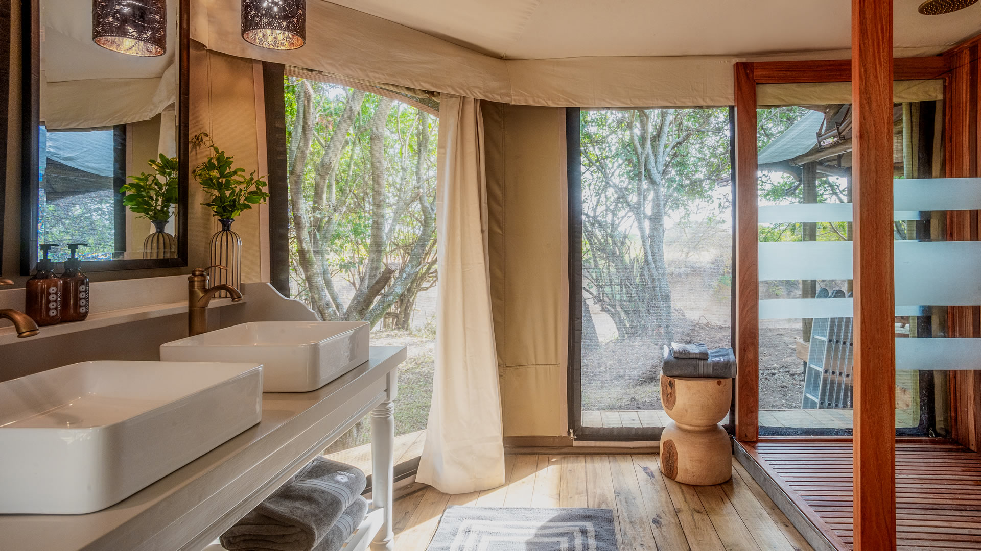 EnquireThe tents at Ilkeliani Camp are well spaced out along the river, giving each one a good sense of privacy. They’re large and airy, with proper beds, en-suite bathrooms, and both indoor and outdoor showers.