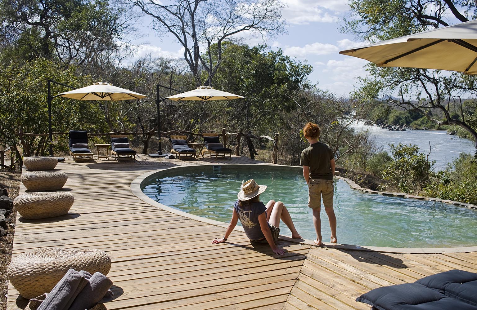 Time in camp is just as enjoyable, whether you’re watching wildlife from your deck or spending time by the pool overlooking the river.